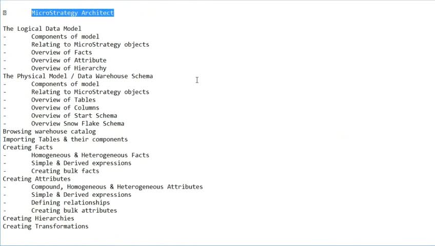 Microstrategy Course Page:- http://bigclasses.com/microstrategy-online-training.html
