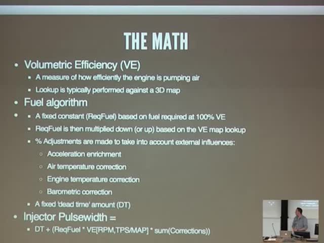 In this talk I'll discuss the development of a hacker focussed, open source engine management system (EMS) based on the arduino platform. Whilst there have been a number of projects to develop DIY or 'build it yourself' engine management (With varying levels of openness), none have focussed on making the concepts of what is normally a black box device as simple and accessible as possible. Rather than focussing on maximum performance or widest compatibility, this projects highest priority has been in lowering the barrier to entry in this area. This talk will present both the practical requirements of setting up engines to use this EMS as well as the concepts used in developing such a system.