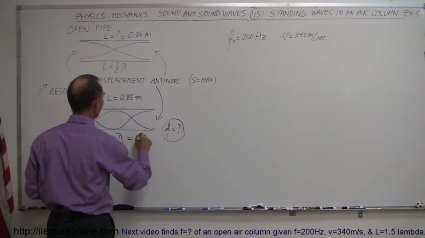 Visit http://ilectureonline.com for more math and science lectures! In this video I will show you how to calculate f=? of an open air column given f=200Hz, v...