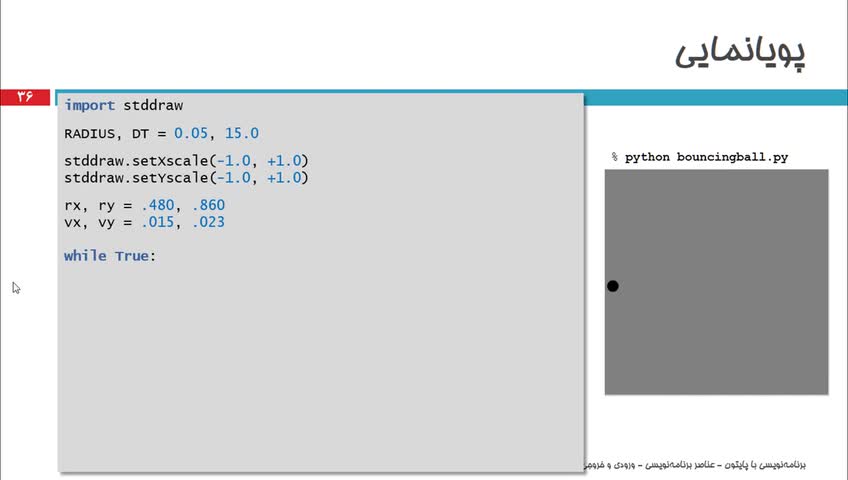 در این ویدیو با اصول ابتدایی پویانمایی و خلق تصاویر متحرک در پایتون آشنا میشوید و سپس این اصول را در پویانمایی چند مثال گوناگون به کار میبرید.