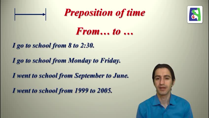 این درس ویدئویی درباره ی حروف اضافه ی زمان و مکان در زبان انگلیسی میباشد. ٢٤ مورد از حروف اضافه ی زبان انگلیسی به زبان پارسی در این درس ارائه شده است. درس ۹۴