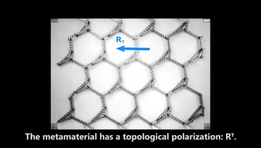 Topological mechanical metamaterials are artificial materials that harbour robust motion at edges. The lattice of gears shown in this video exhibits such a motion, which is confined to one edge of the system while the rest of the lattice, including the other edge, remains rigid. The difference in flexibility of the left and right edges originates from a topological index (the "polarization") that characterizes the lattice mode spectrum. Akin to the number of holes in a donut or pretzel, this index captures the topology of the underlying material.