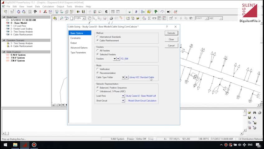 cable, sizing, DIgSiLENT, دیگسایلنت