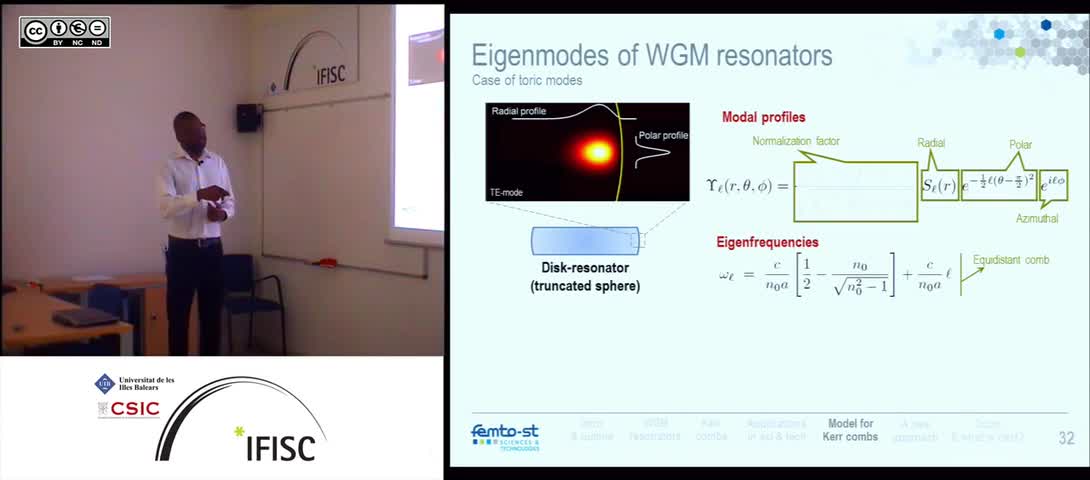 - By: Yanne K. Chembo, Optics Department, FEMTO-ST Institute, Besançon, France - Date: 2012-10-30 14:30:00 - Description: Monolithic optical frequency combs ...
