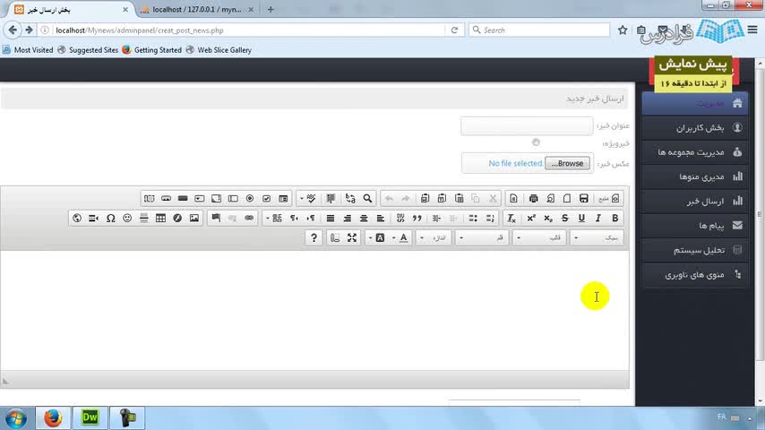 درس ششم: ساخت بخش ارسال خبر
