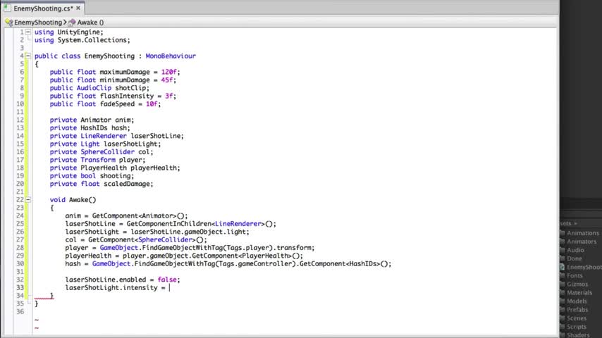 Watch this video in context on the Unity learn pages - http://unity3d.com/learn/tutorials/projects/stealth/enemy-shooting Learn about managing the Enemy's ab...