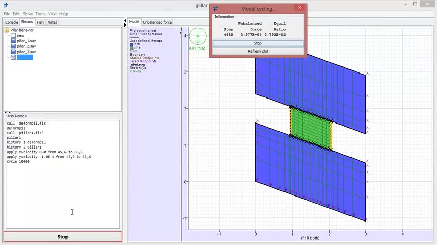 Post peak pillar behavior, flac, Software (Industry), pillar behavior