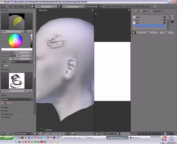 texture, painting, tutorial, blender, 2.50, tool, model, head, face, tatoo, layout, unwrap, uvmap, paint