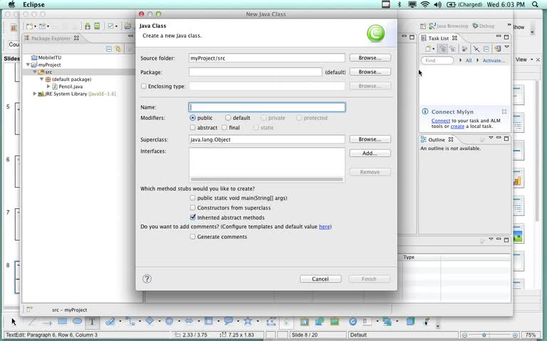 This lecture covers the concept of the Object and how to create a class and use the class inside of a driver program. Object Data Members and Member Functions are described. Access modifiers and method functionality is also demonstrated. The "dot" notation is also demonstrated.