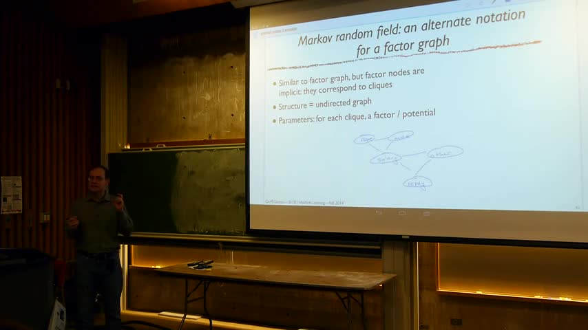 Topics: d-separation, Bayes ball algorithm, factor graphs, Markov random fields Lecturer: Geoff Gordon https://piazza.com/cmu/fall2014/1070115781/resources
