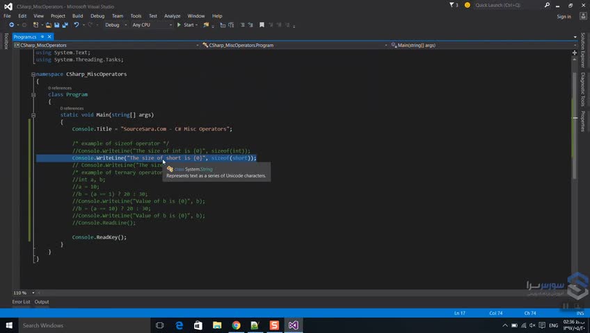 آشنایی با عملگرهای متفرقه در سی شارپ در لینک زیر:https://sourcesara.com/csharp-miscellaneous-operators