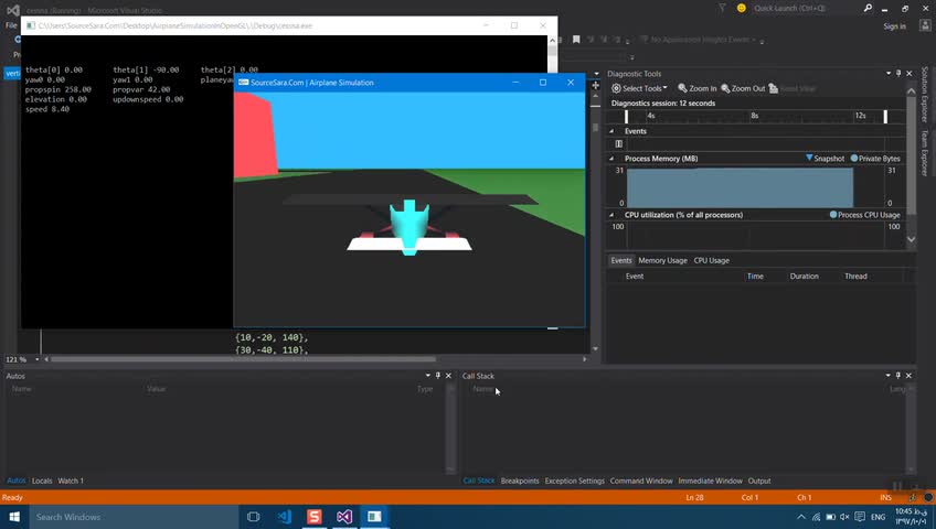 شبیه سازی هواپیمای کوچک با OpenGL به زبان C++ در لینک زیر:https://sourcesara.com/airplane-simulation-in-opengl-using-cpp