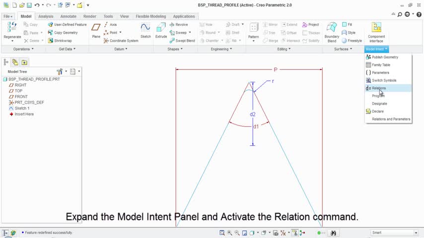 This tutorial will display how to create relation based sketches in Creo Parametric. As an example we will create a sketch profile of a British Standard Pipe...