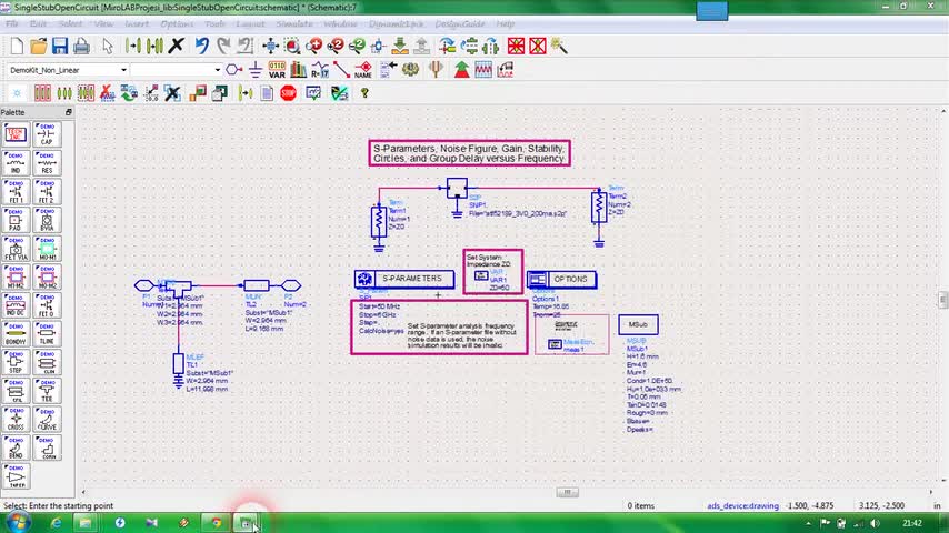 ADS, matching, simulation, impedance, transistor, tek saplama, uygunlaştırma, micro strip, mikro şerit hat, empedans