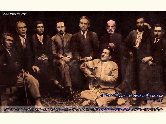 آدرس انجمن در فیس بوک : https://www.facebook.com/groups/AsilMusic --- این عکس در کلاس ابراهیم خان منصوری گرفته شده است از راست به چپ : علی اکبرخان شهنازی ، ر...