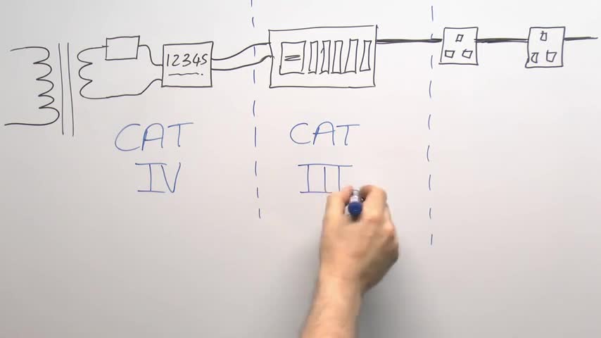 Measurement categories for electrical measurement equipment such as multimeters. CAT I equipment is not suitable for connection to the mains supply, CAT II a...