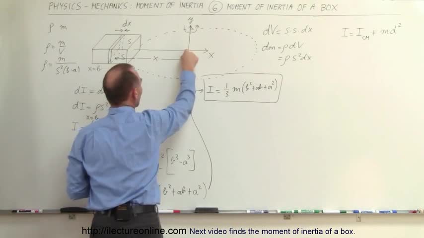 Visit http://ilectureonline.com for more math and science lectures! In this video I will find the moment of inertia of a box. Next video in the moment of ine...