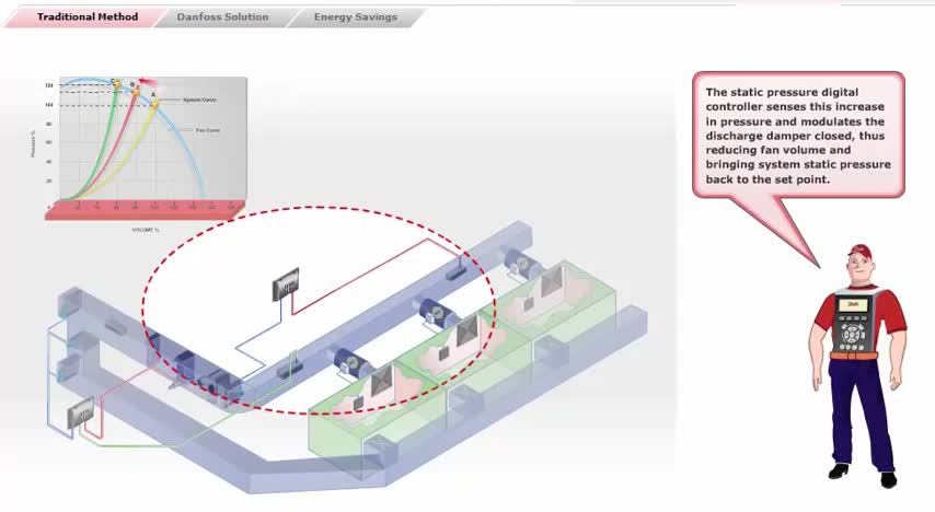 A description of VAV system: - VAV applications. - How it works traditionally and Danfoss solution. - The key benefits of using a VLT HVAC drive in VAV systems.