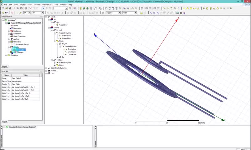 ansoft maxwell, magnetic field, coils, electromagnetic, EM simulation, wireless power transfer, WPC, WPT, coupling factor, Inductance (Dimension), plotting t...