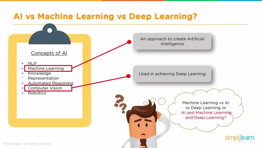 This Machine Learning vs Deep Learning vs Artificial Intelligence video will help you understand the differences between ML, DL and AI, and how they are related to each other. The tutorial video will also cover what Machine Learning, Deep Learning and Artificial Intelligence entail, how they work with the help of examples, and whether they really are all that different.