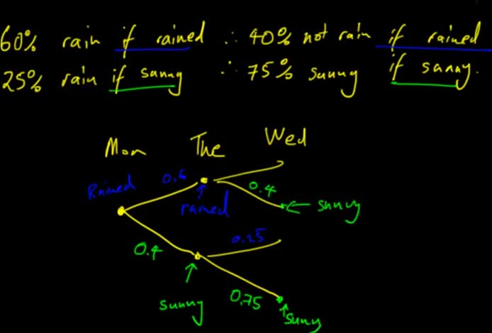 milkyway, worked example of markov chains., how to calculate probability affected by last outcome, uses of tree diagrams in probability, conditional probabil...