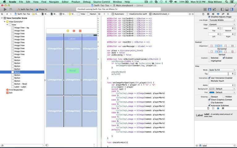 @SkipAllMighty Source code: https://github.com/skipallmighty/SwiftTacToe Algorithm details: http://en.wikipedia.org/wiki/Tic-tac-toe#Strategy We skip forks a...