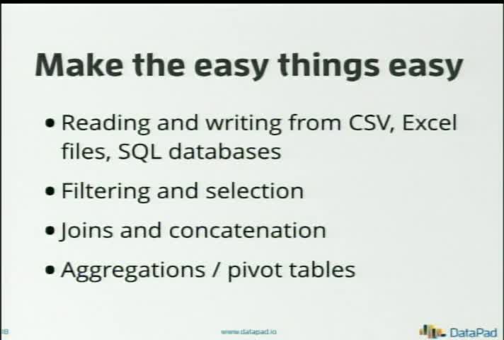 Speaker: Wes McKinney In this talk, I'll discuss how the modern Python stack has enabled innovation in business analytics and general purpose small, medium, ...