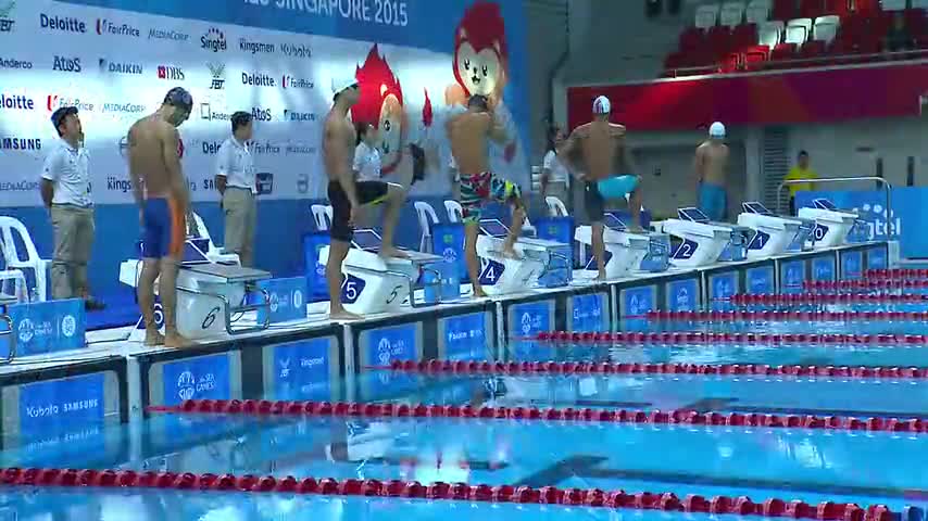 "Swimming on Day 5 of 28th SEA Games Singapore 2015 (10 June 2015) Men's 50m Butterfly Heat 1 SUTANTO Glenn Victor (INA) (24.43) - 1st PANANURATANA Supakrid ...
