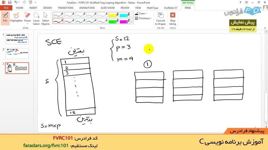 در مجموعه فرادرس های آموزش الگوریتم بهینه سازی جهش قورباغه یا SFLA در متلب، در ابتدا مبانی تئوری و نظری الگوریتم SCE و ساختار و نحوه عملکرد آن به صورت کامل تشریح می شود. در ادامه، پیاده سازی عملی و گام به گام این الگوریتم با استفاده از زبان برنامه نویسی متلب (MATLAB) انجام می شود، که بعدها، با تغییر آن، کد مربوط به الگوریتم قورباغه نیز، ایجاد می گردد. در ادامه، مبانی تئوری و نظری الگوریتم جهش قورباغه مخلوط شده یا SFLA با مروری بر مبانی نظری الگوریتم های ممتیک، مورد بحث و بررسی قرار می گیرد. در نهایت، با استفاده از کدی که قبلا برای الگوریتم SCE-UA نوشته شده بود، و با اعمال تغییرات لازم در ساختار برنامه، پیاده سازی عملی الگوریتم جهش قورباغه نیز، انجام می شود.