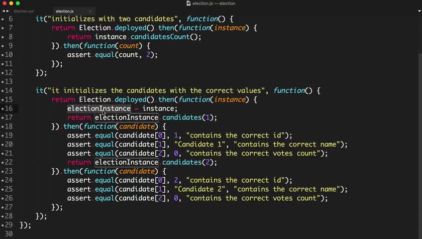 1. Smoke Test [11:40] Code: https://github.com/dappuniversity/election/releases/tag/1-smoke-test