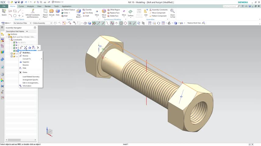 Bolt and Nut, Bolt, Nut, Motion Simulation tutorial, Motion, Simulation, Siemens-NX-10, Siemens-NX 10 Software, Video, Video Tutorial, Tutorial, NX-10 Tutori...