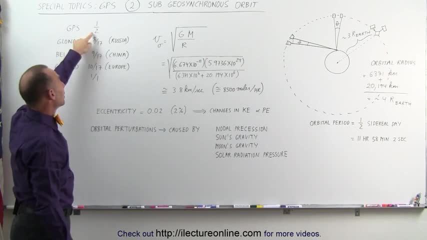 Visit http://ilectureonline.com for more math and science lectures! In this video I will explain the sub-geosynchronous orbit of the GPS satellite. Next vide...