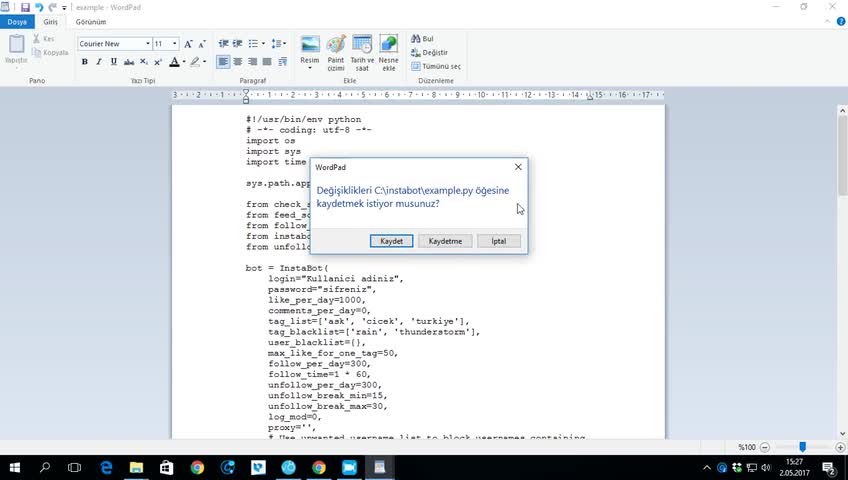 İnstagram botunu aşağıdaki linkten indirin;https://github.com/instabot-py/instabot.py