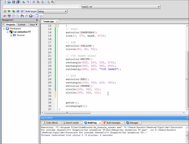 In this video, I am going to teach you how to make animations with graphics.h functions.