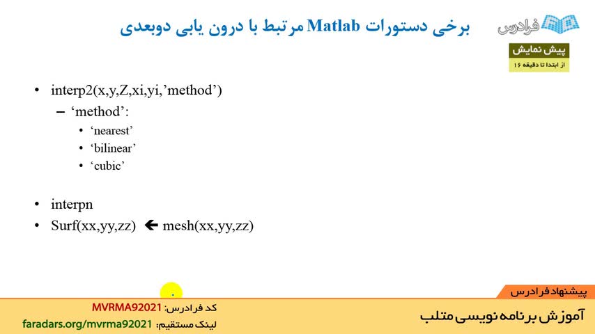 انواع روش های درون یابی (به همراه برنامه MATLAB)