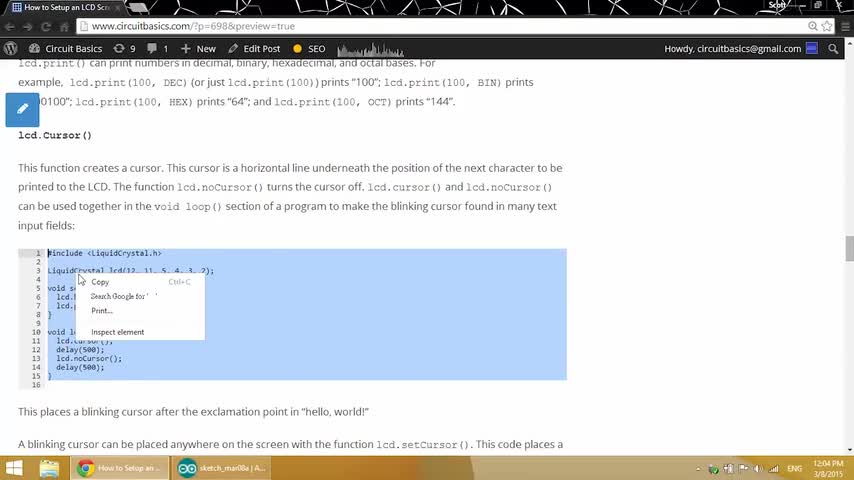 arduino, circuit basics, arduino LCD, arduino display, arduino liquidcrystal, how to set up an LCD on arduino, how to program an LCD on arduino, arduino lcd ...