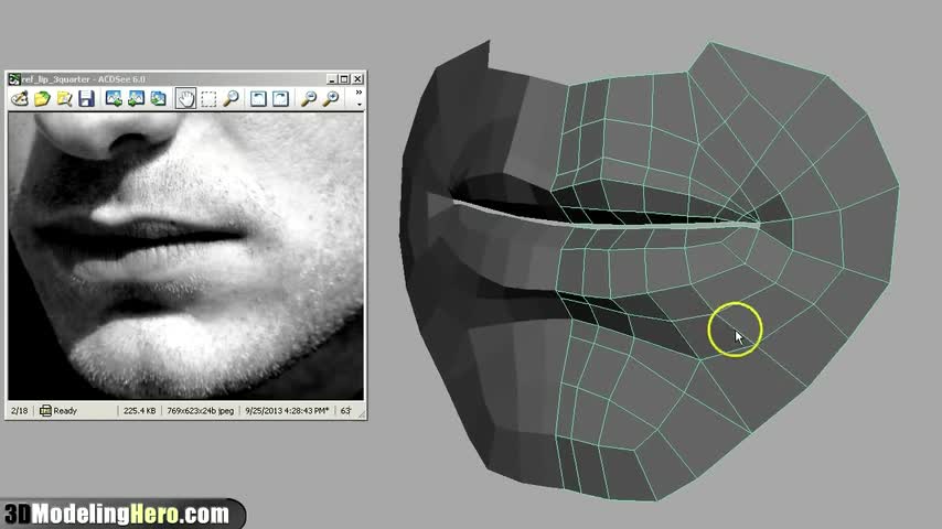 3D modeling tutorial, how to model a face, how to model lips, how to model a mouth, modeling a face, how to model a face in maya, how to model in maya, low p...