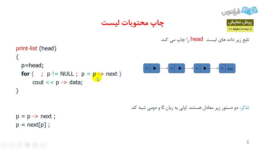 الگوریتم های کار بر روی لیست پیوندی یک طرفه (اضافه و حذف گره، اتصال، وارون و….)