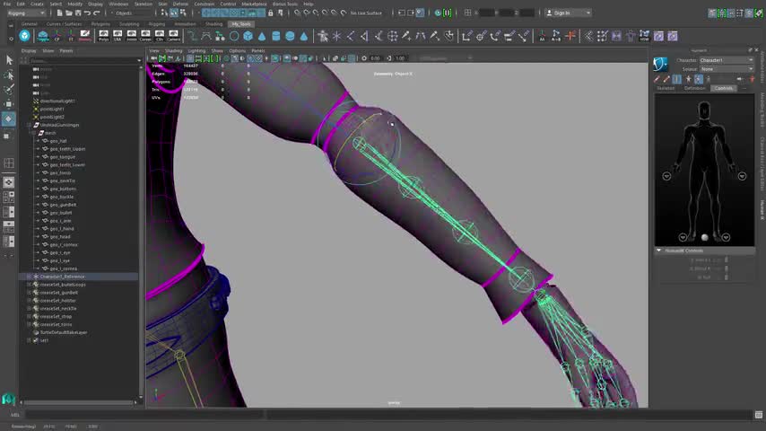 The HumanIK animation system in Maya LT now supports up to 5 roll bones per limb. Using roll bones in a limb helps animators distribute the deformations of t...