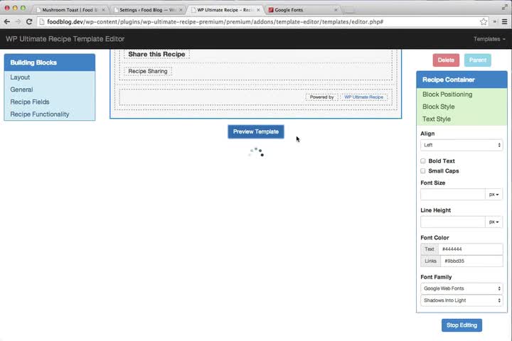 http://www.wpultimaterecipe.com - In this Video Lesson we show you how to change fonts in the Template Editor