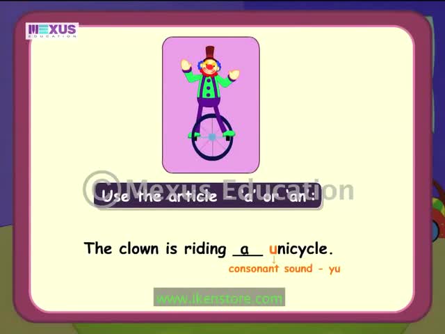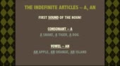 This animation teaches the learner to identify the rules to use the indefinite articles, a and an before a noun and to use the definite article 'the' before a noun.
